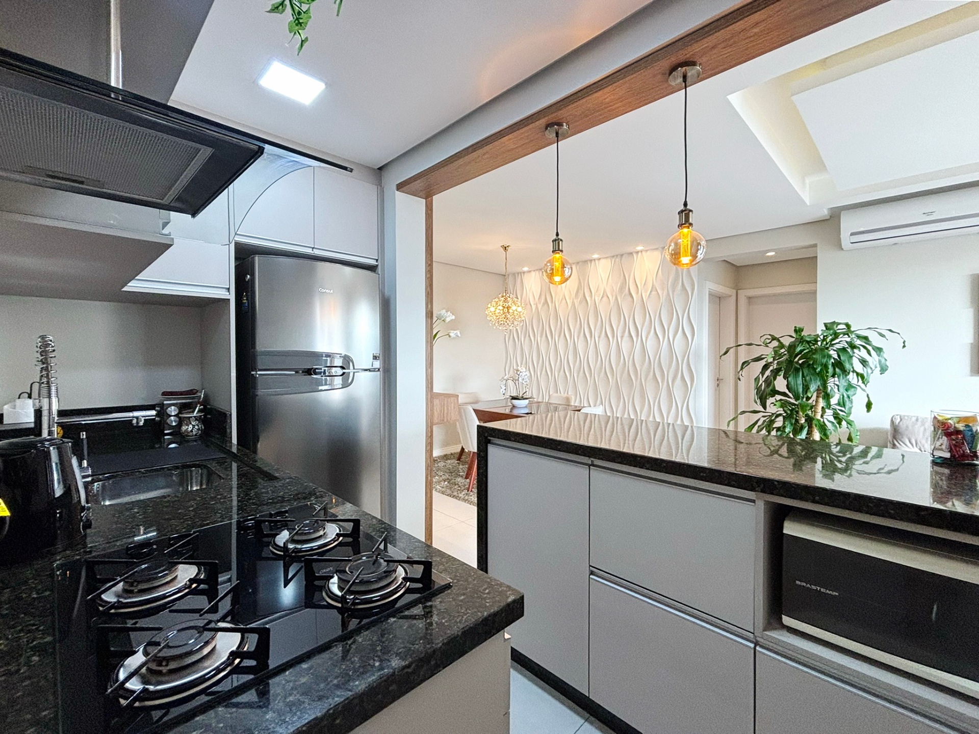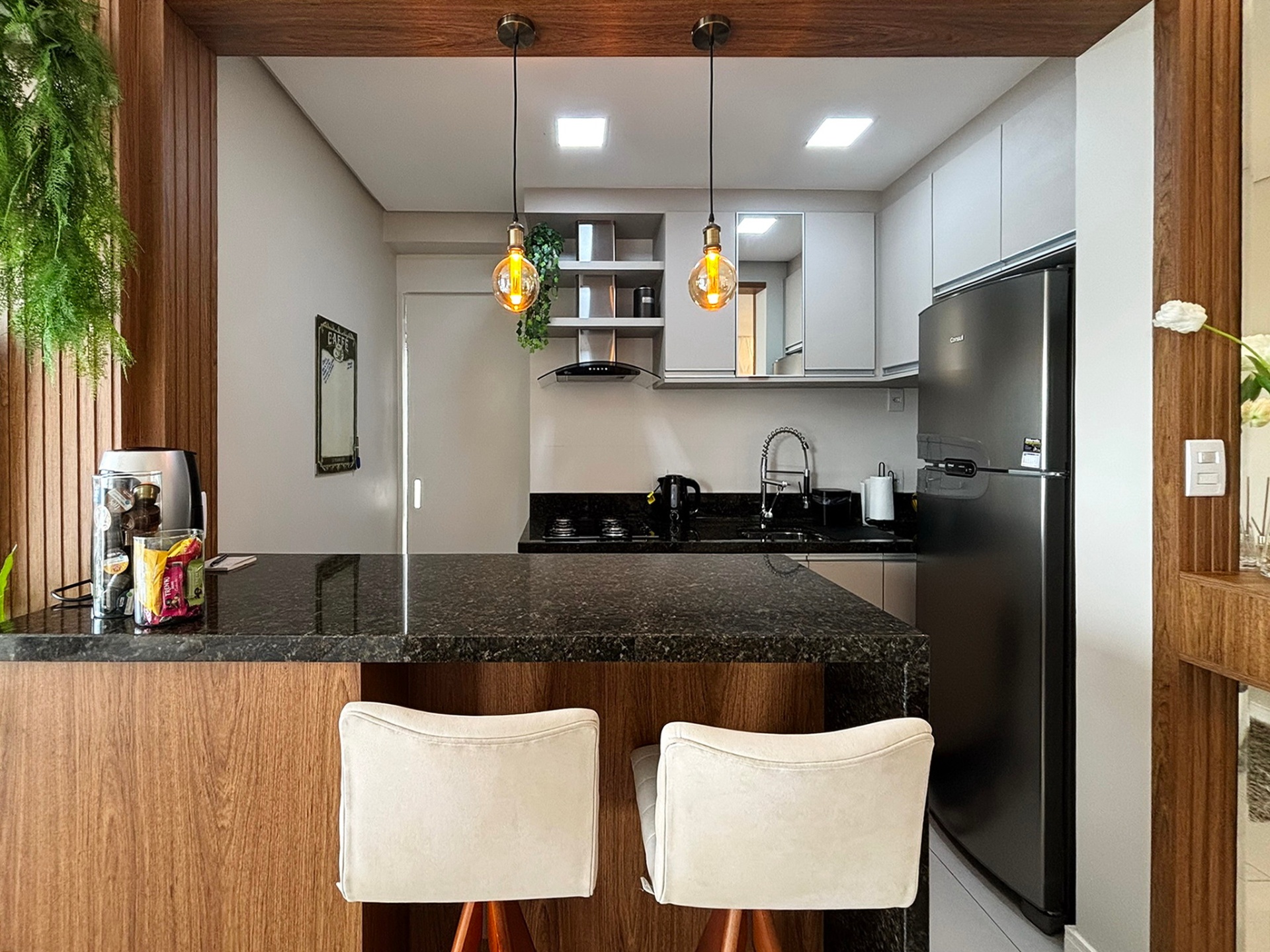 Este charmoso apartamento de dois dormitórios é ideal para quem busca praticidade sem abrir mão do conforto e da beleza. Com ambientes integrados, ele oferece uma sensação de amplitude e fluidez perfeita para o dia a dia.