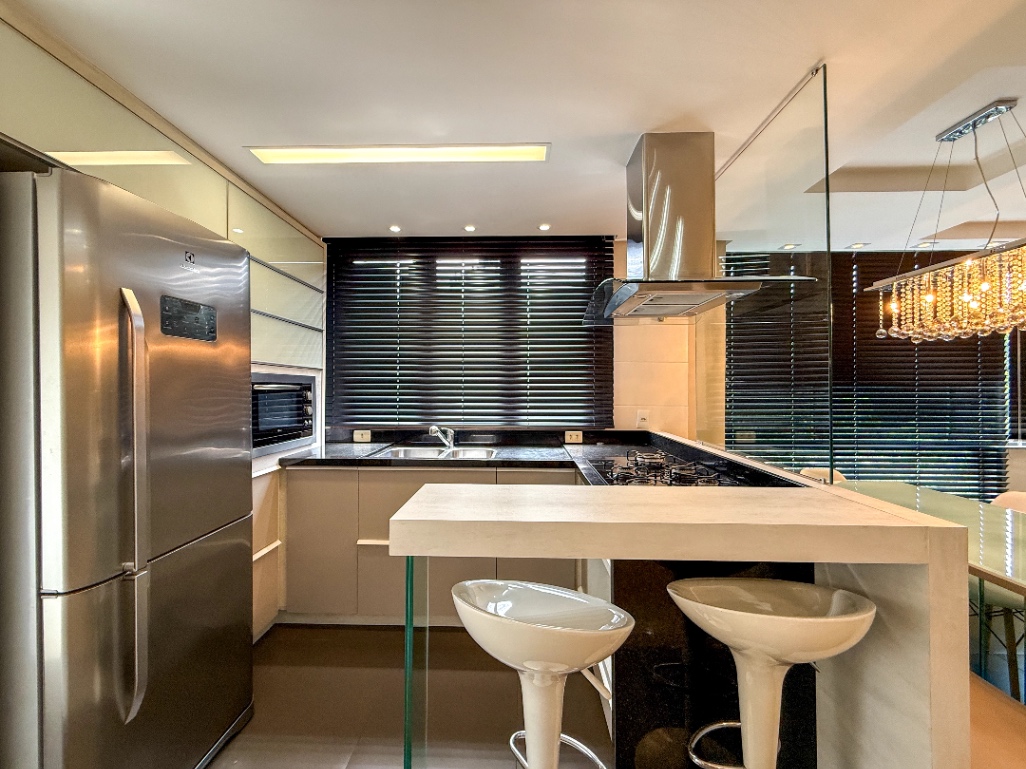 Totalmente mobiliado, decorado com bom gosto e climatizado, cada ambiente reflete um cuidado especial com os detalhes. A integração dos espaços, com um charmoso espaço gourmet e churrasqueira, proporciona um ambiente ideal tanto para momentos de convivência quanto para recepcionar amigos e familiares.