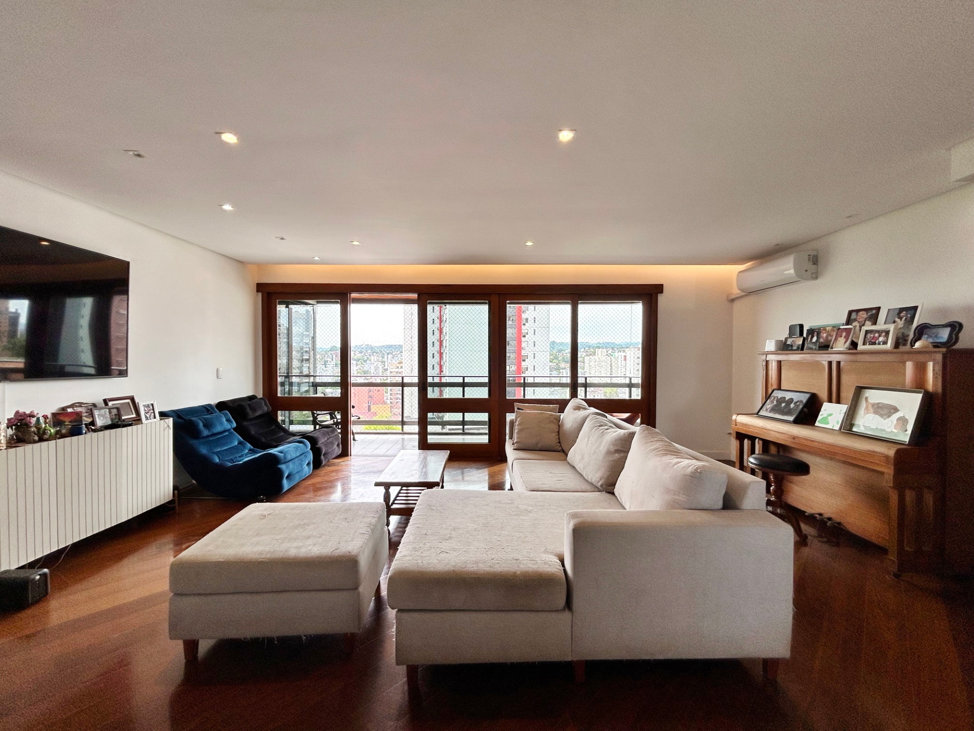 São 3 dormitórios, sendo uma suíte com closet. Área social espaçosa, lavabo, peça adicional, que pode ser usada como sala de TV ou home hoffice, churrasqueira, ampla cozinha equipada, área de serviço e despensa.