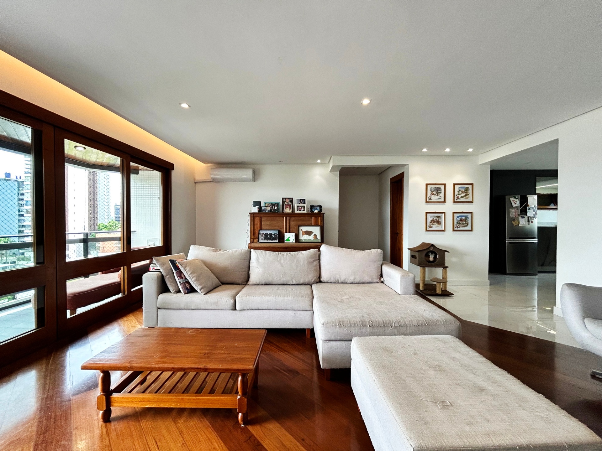 Apartamento realmente amplo, em andar alto em um dos condomínios mais tradicionais da cidade. Conta com sacada externa em toda a sua área e duas vagas de garagem.