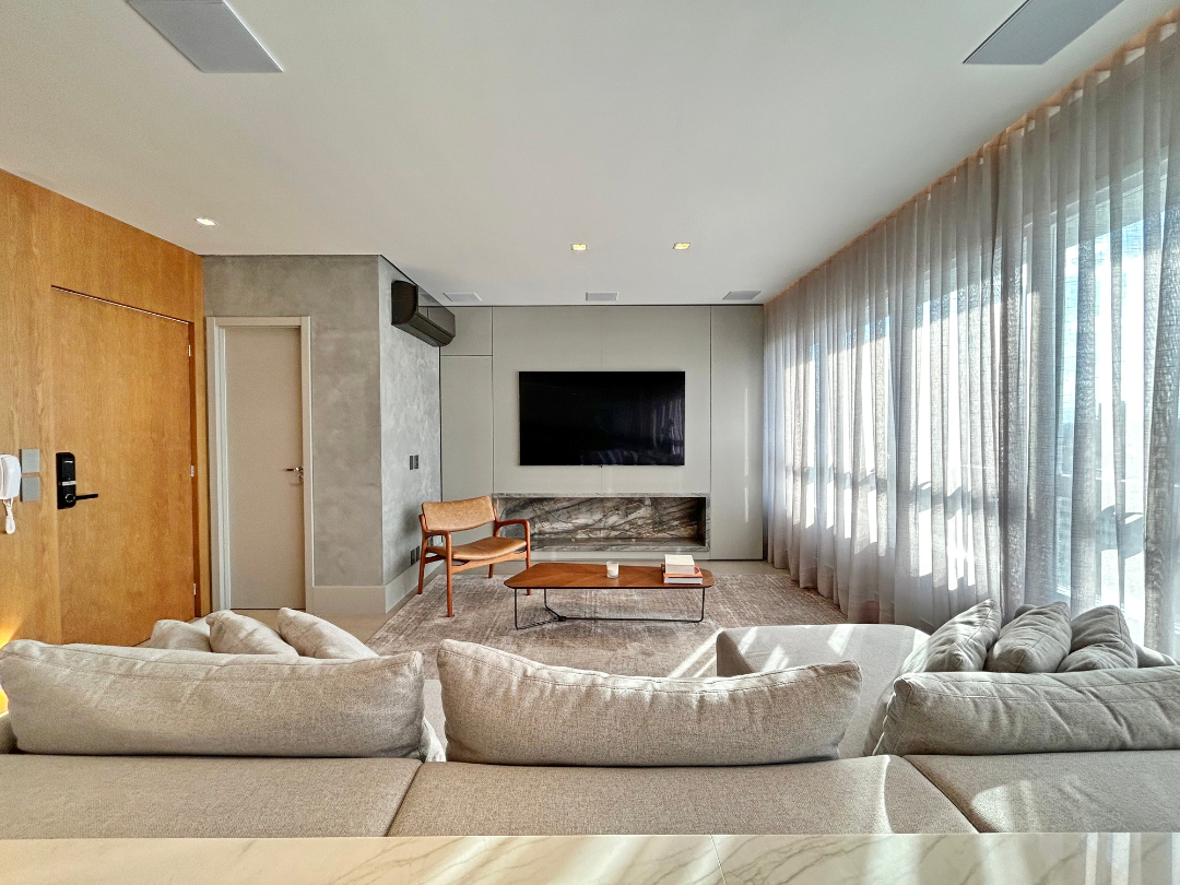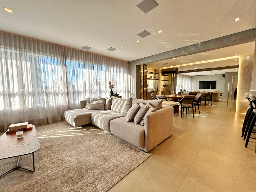 Apartamento mobiliado e decorado, com ótima área social. Detalhes incríveis, que fazem a diferença: marcenaria de altíssima qualidade, quartzito em boa parte dos ambientes, vidros duplos para isolamento térmico/acústico, persianas automatizadas, climatização, sistema de som/hometheater com caixas acopladas no teto, cozinha e lavanderia equipadas, adega. Ampla sala de estar integrada com o jantar e espaço gourmet. Imóvel originalmente de 3 dormitórios, transformado em 2 suítes. Agende a sua visita com um dos contatos disponíveis nesta página. Nossa equipe te aguarda com todas as informações necessárias.
