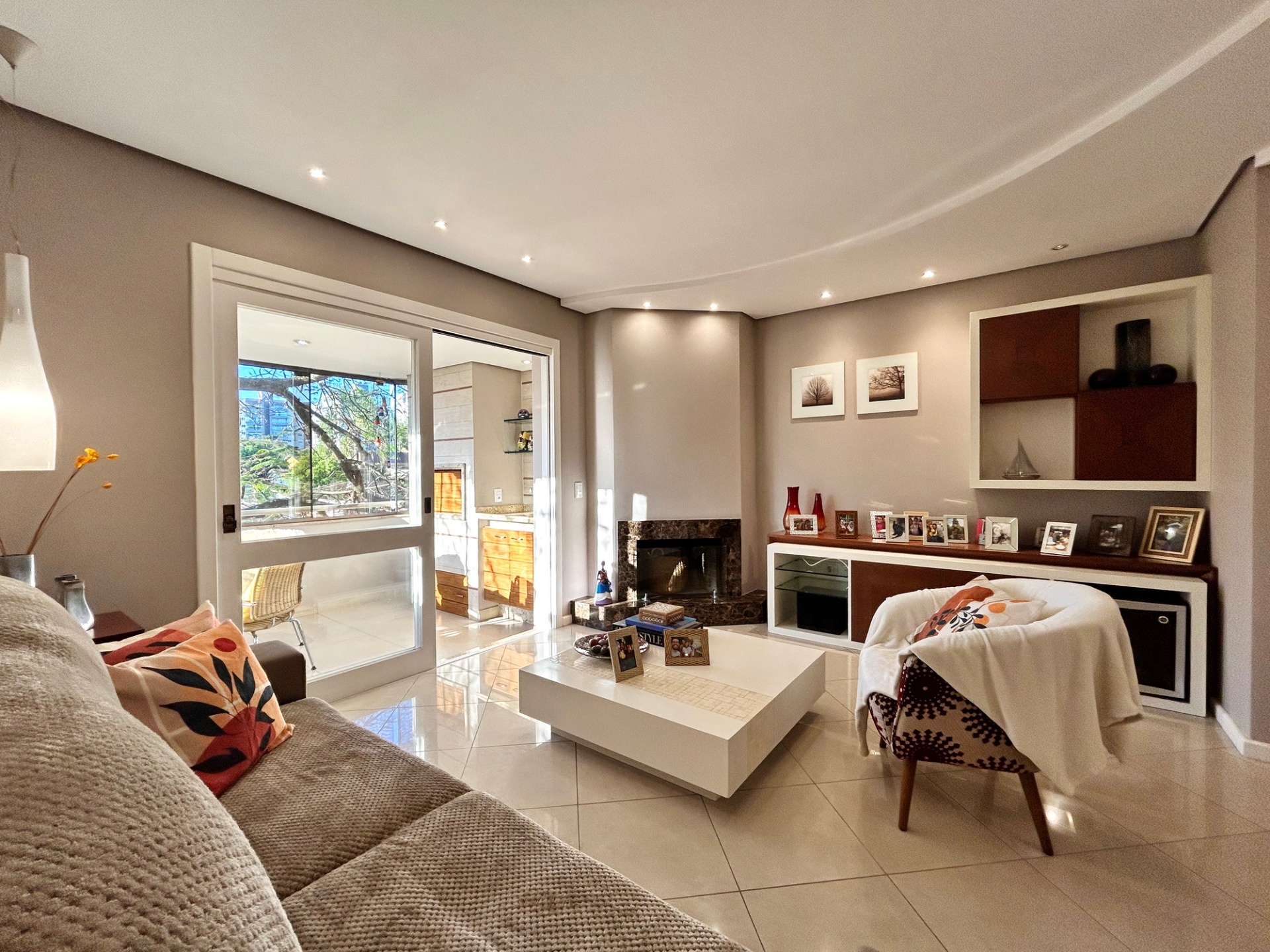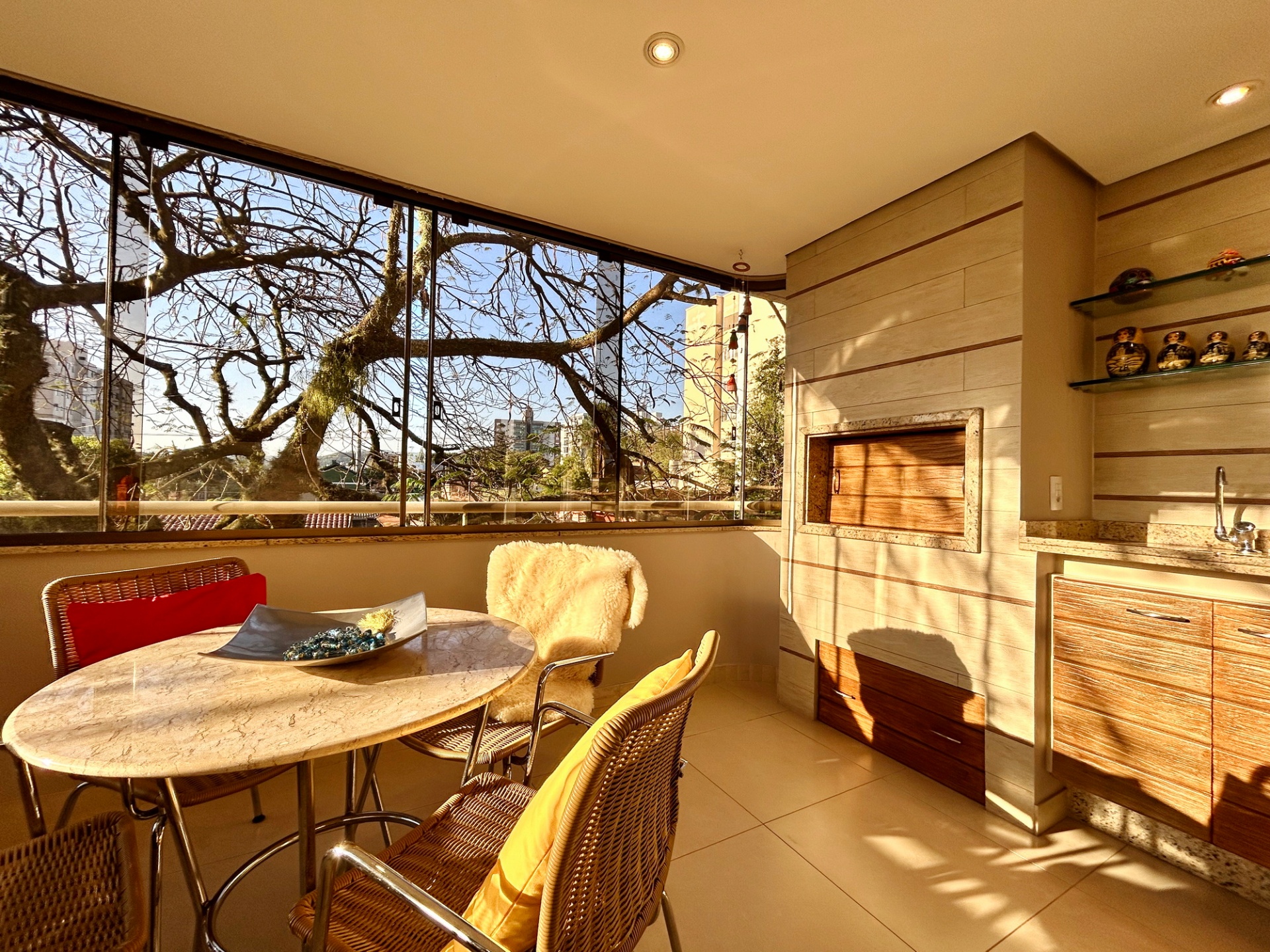 Peças amplas, sendo o estar com lareira e sacada com churrasqueira. Área de serviço e despensa. Além disso, conta com 3 vagas de garagem.