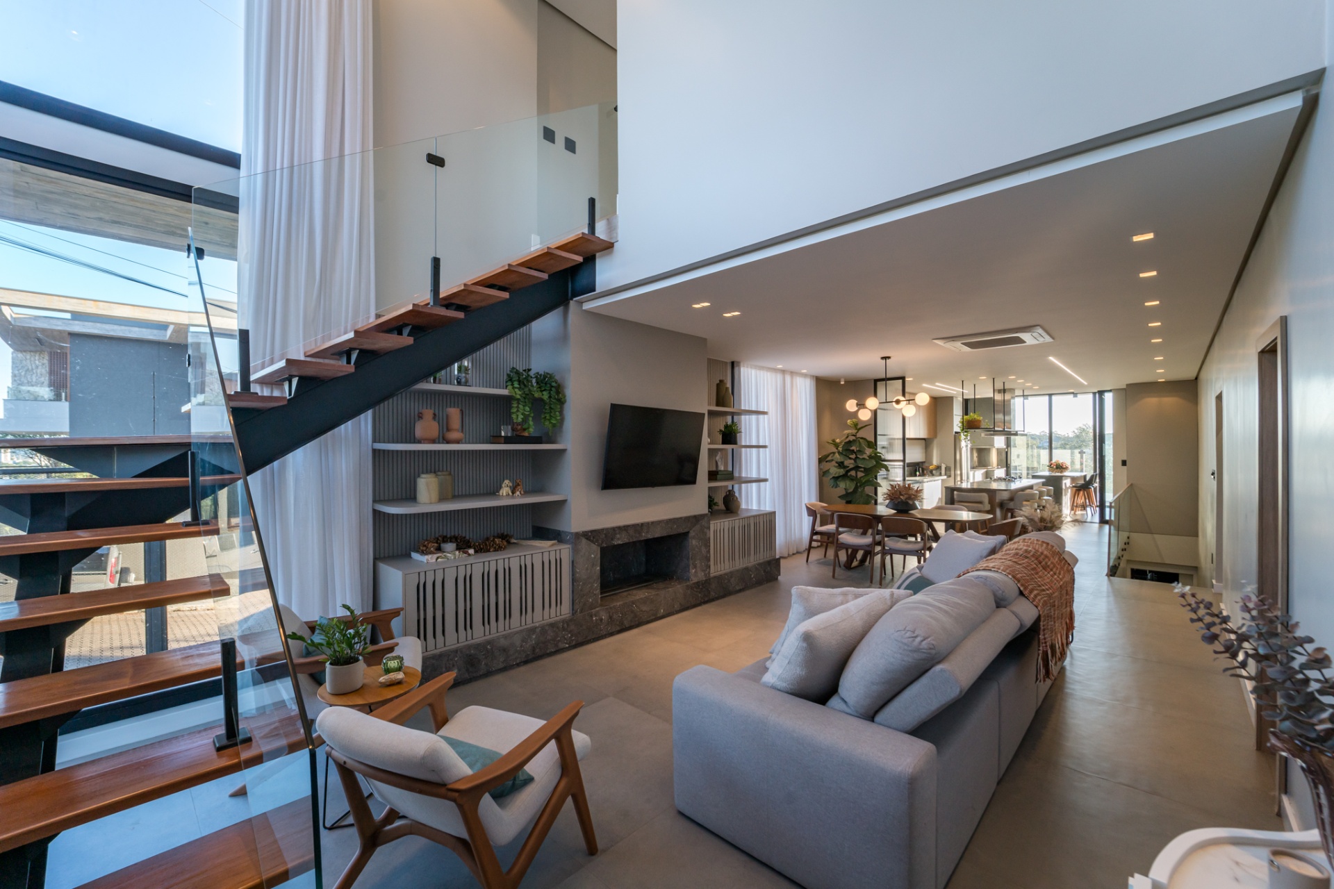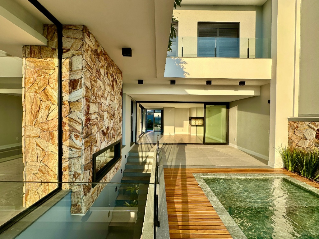 Ela contará com 3 suítes, sendo uma máster com espera para banheira e closet, sala e cozinha integradas, adega, lareira, banheiro social, lavanderia e janelas automatizadas, piscina aquecida, espaço gourmet, pátio nos fundos, depósito e 4 vagas de garagem.
