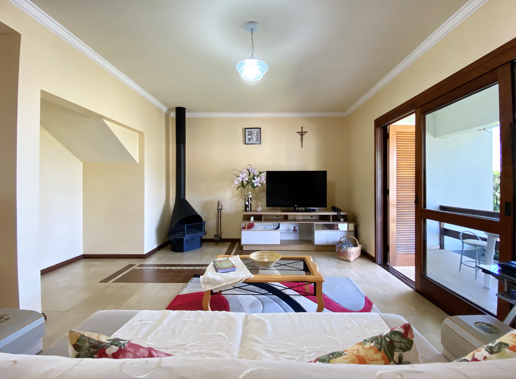 Sala de jantar integrada ao estar com lareira e varanda, sala íntima, escritório com linda vista para o pôr do sol.