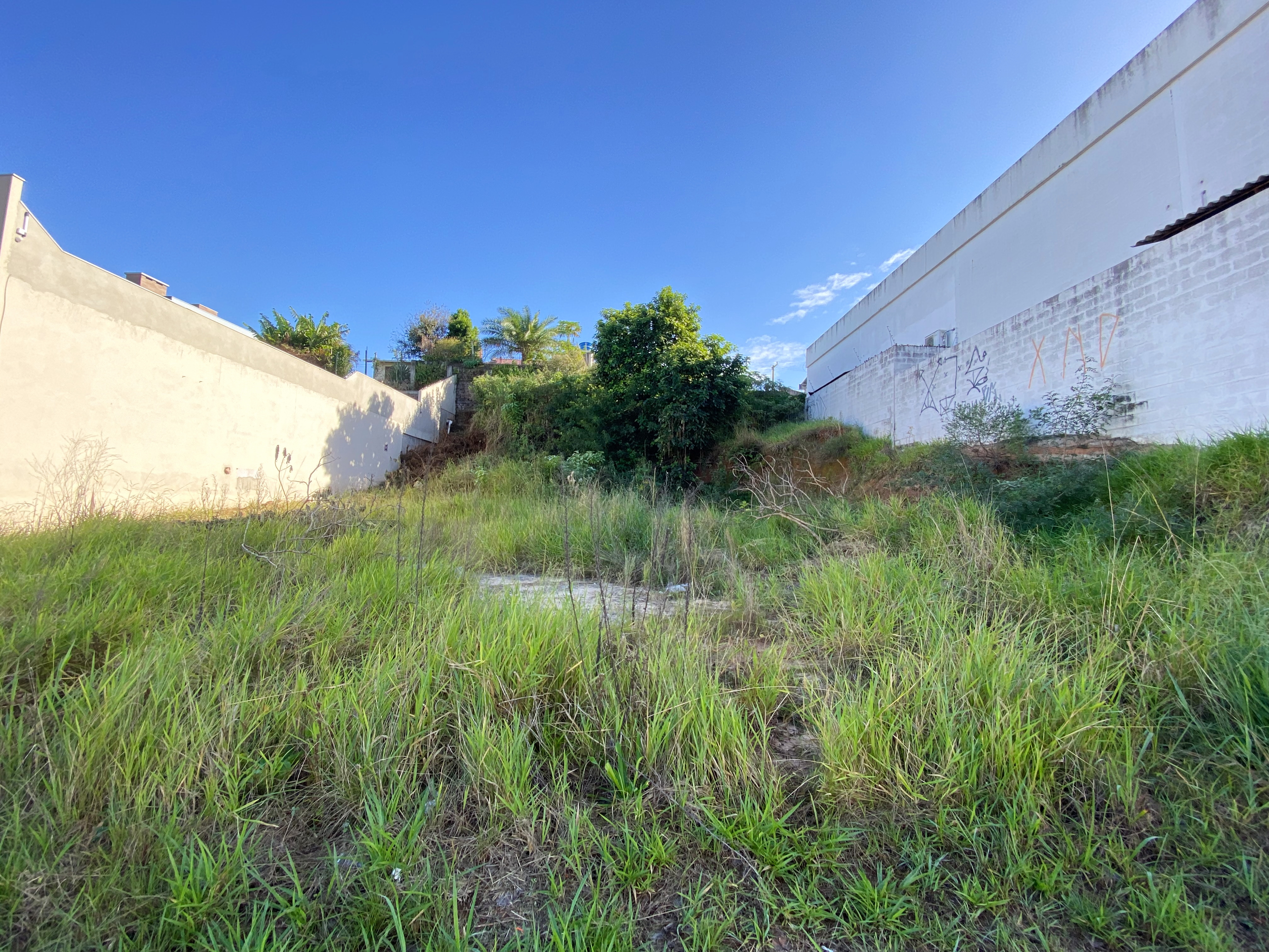 Terreno em aclive medindo 10 metros de frente por 30 metros de profundidade totalizando 300 metros quadrados com frente norte a 100 metros da Guia Lopes.
