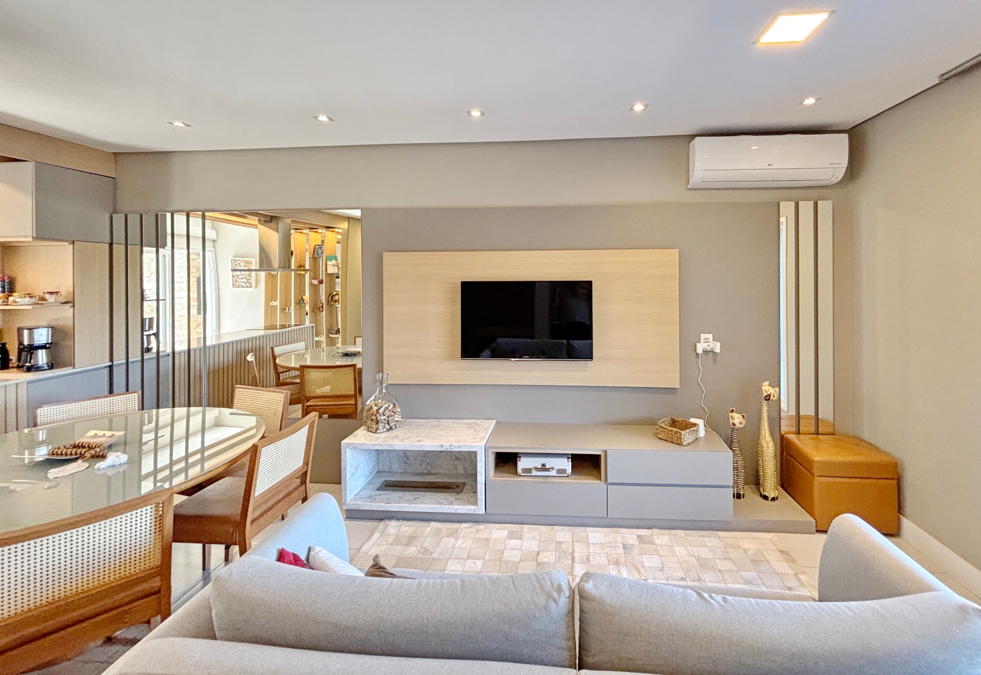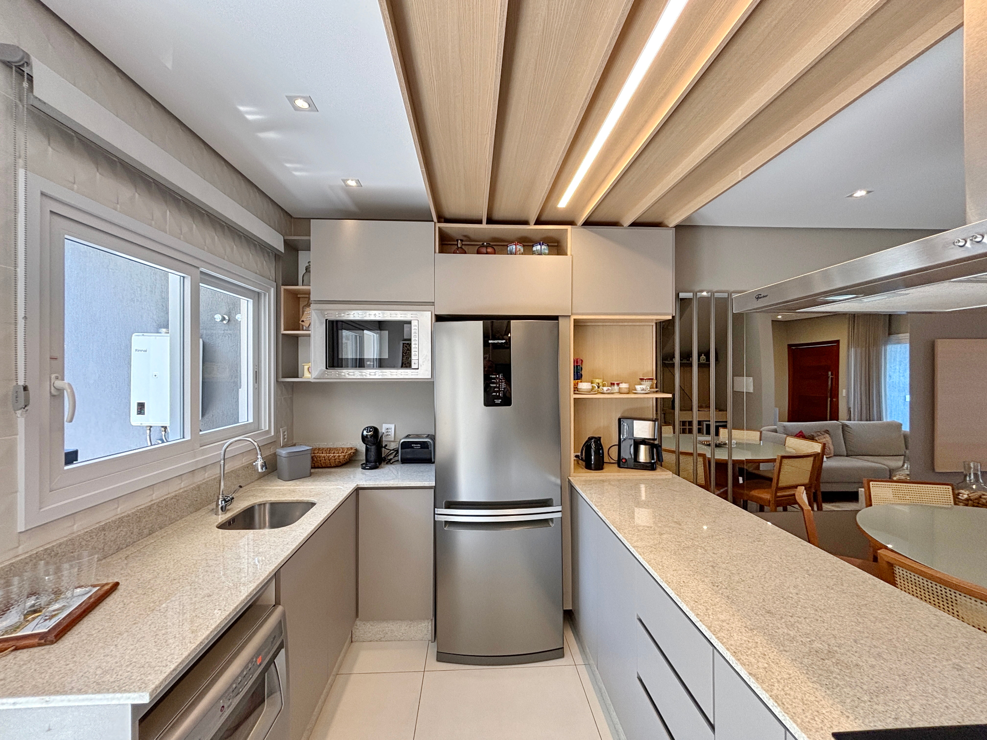 A área social é integrada, com sala de estar e jantar, cozinha com ilha, água quente e uma completa área gourmet com churrasqueira, perfeita para receber amigos e família. O lazer é garantido com piscina, pátio fechado e um amplo quiosque.